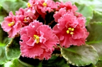 Крупные оранжево-розовые п/м звезды с густой бахромой «шапкой» стоят над красивой пестро-листной розеткой.